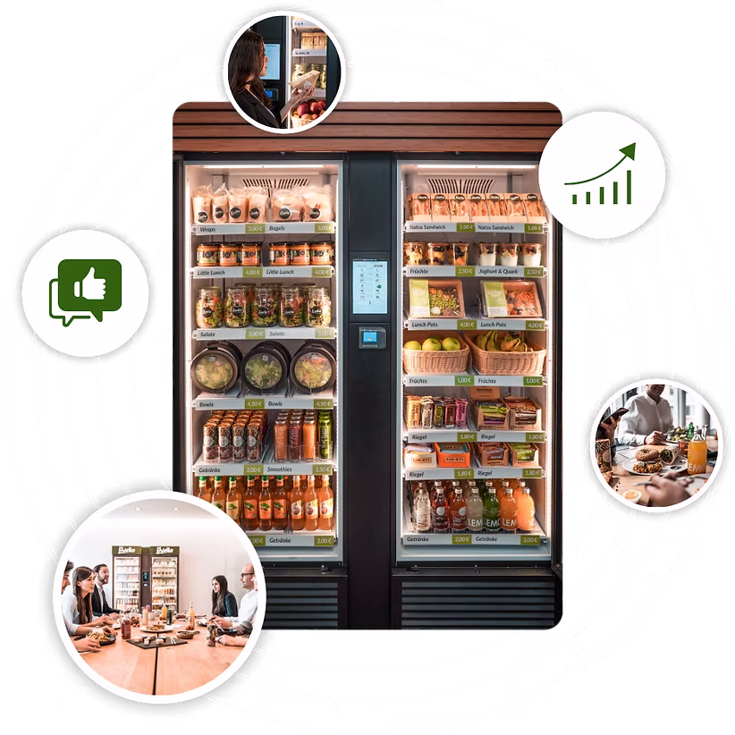 Mit dem livellos Essensautomaten ermöglichen wir eine 24/7 Betriebsverpflegung, bei der das Wohlbefinden Ihrer Mitarbeitenden im Mittelpunkt steht. Das Angebot unserer Partner an hochwertigen, natürlichen Speisen und Getränken steht immer bereit, um die Produktivität zu steigern und Sie als attraktiven Arbeitgeber zu positionieren - und das alles ohne zusätzlichen Aufwand oder Personalkosten. Entdecken Sie die smarte Art der Betriebsgastronomie und stärken Sie Ihr Team mit unserer innovativen Smart Fridge-Lösung.